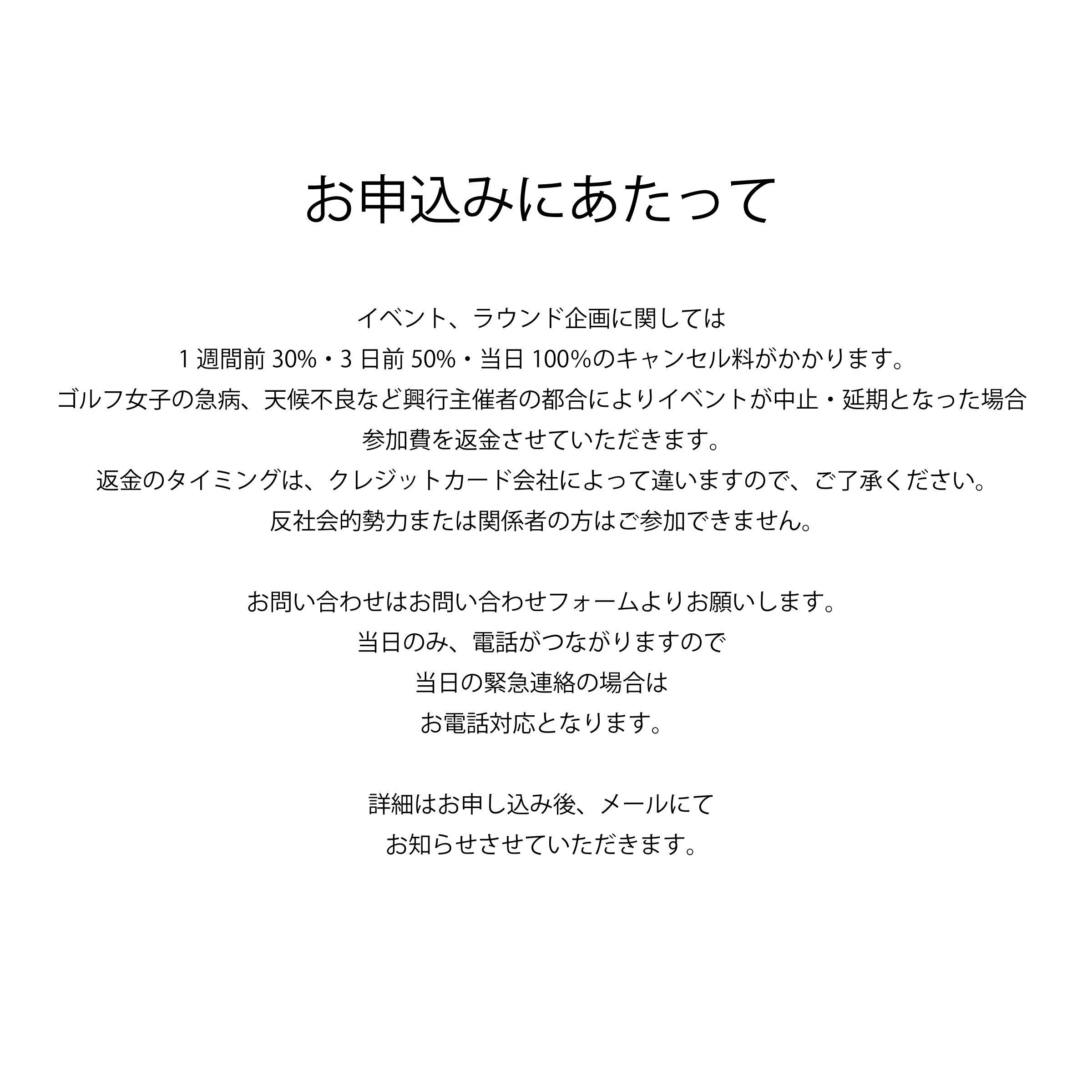 以前にゴルフ女子とトラブルのあった方、反社会的勢力または関係者の方は参加をお断りいたします。